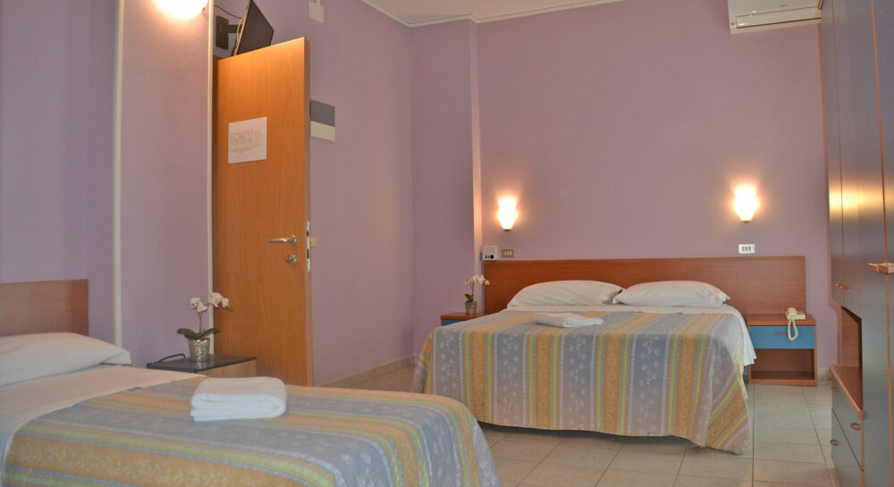 Letto matrimoniale, 2 letti singoli, aria condizionata, free Wi-Fi, TV LCD, scrittoio, frigo, e cassaforte.